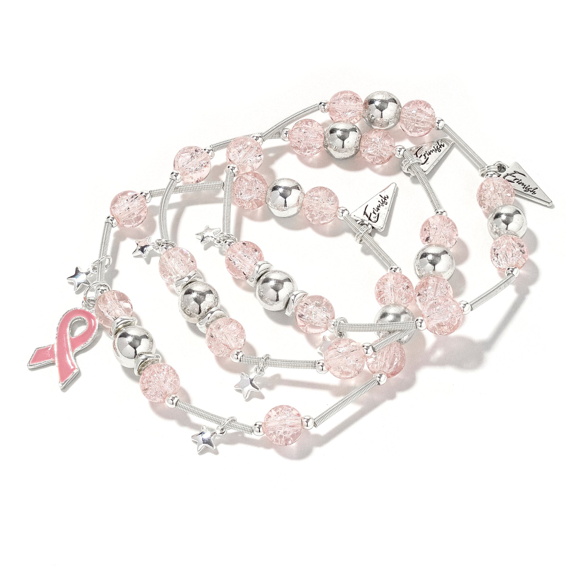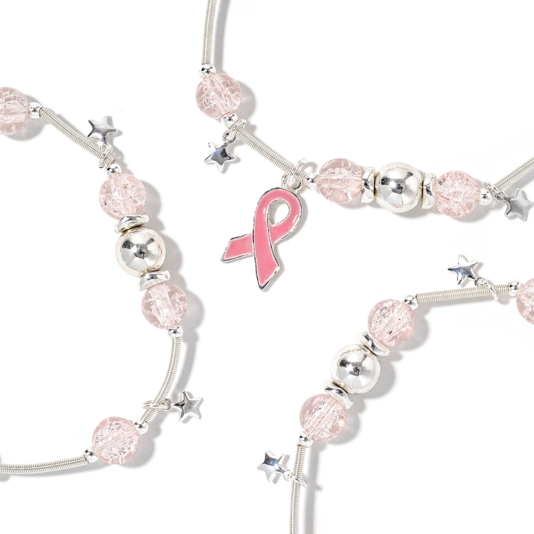 • Support with style! The Hope Starter Stack is a stunning three-piece bracelet set featuring unique pink beads and a playful pink ribbon charm, designed to celebrate strength and hope in the fight against breast cancer. Perfect for layering or wearing solo to share your spirit with a fun, meaningful touch.