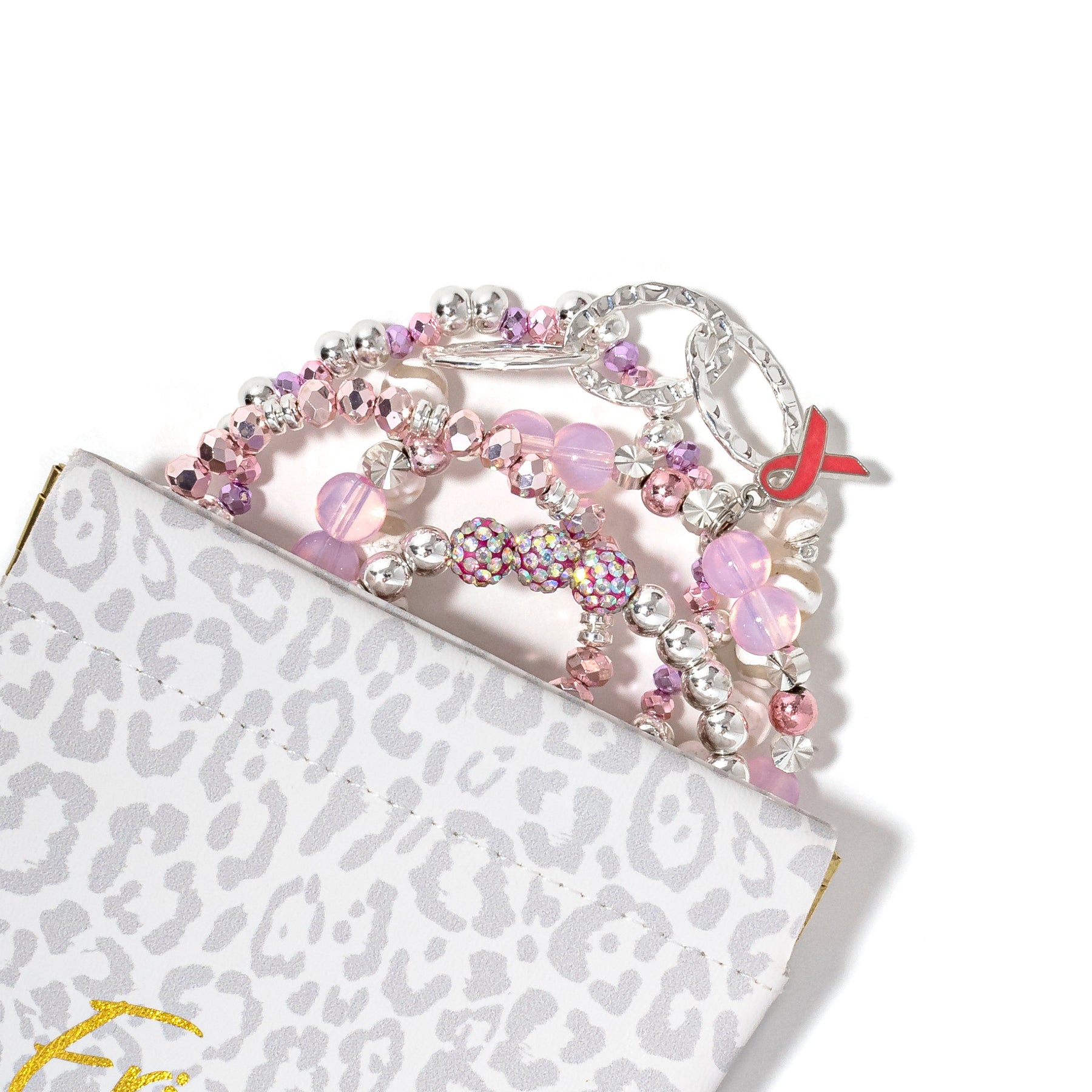• Shine bright and show your support with the Limited Edition Breast Cancer Stack Gold. This stunning bracelet stack features vibrant colors and sparkling accents that add a playful pop to any outfit. Perfect for raising awareness in style while keeping your wrist glowing with positive energy.