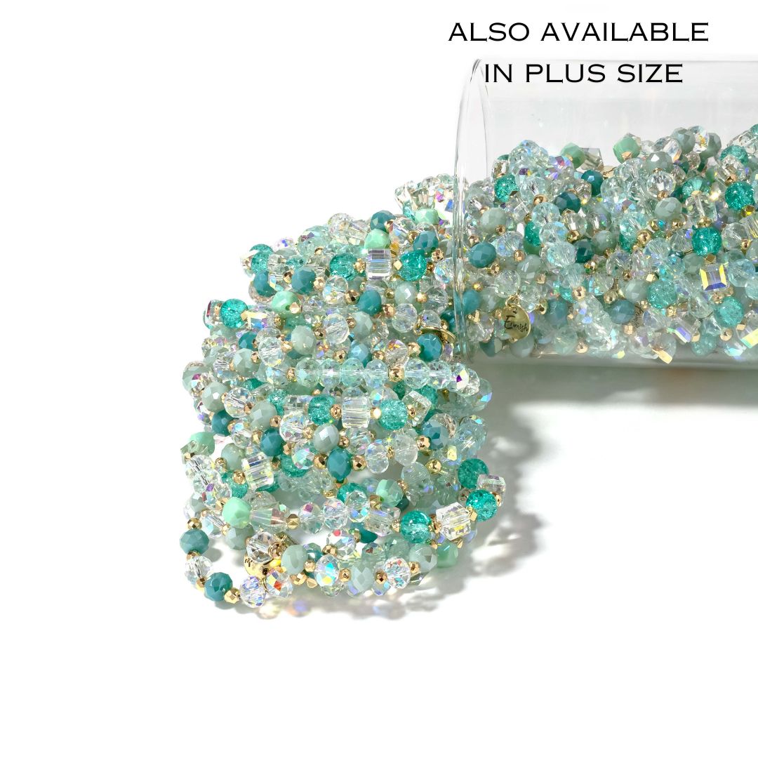 • Dive into cool, calming vibes with the Tide Jar. This gorgeous collection of minty turquoise bracelets brings beachy, breezy energy to your wrist. Layer them all at once for maximum impact or wear them solo when you want something subtle. Perfect for adding a splash of color to any outfit.