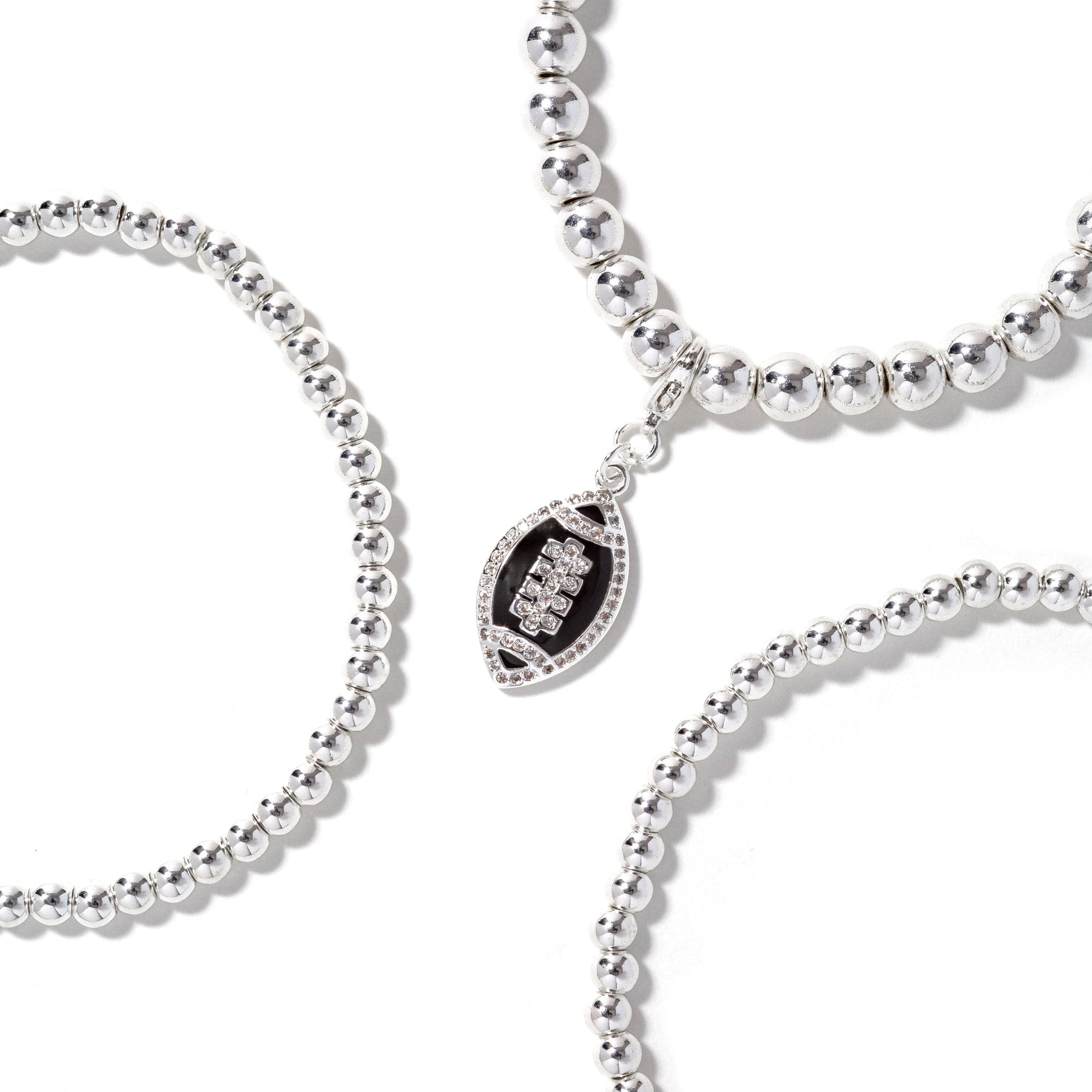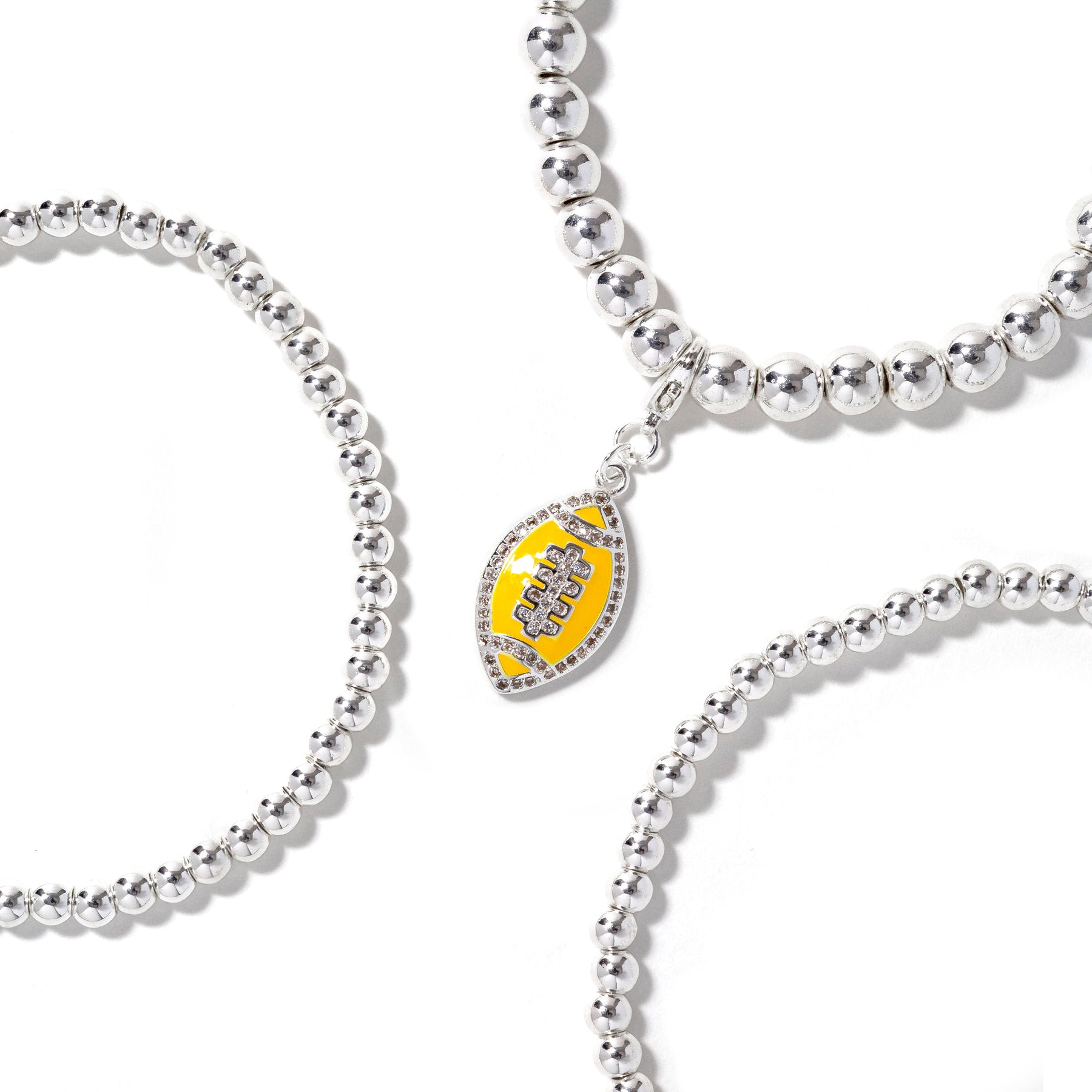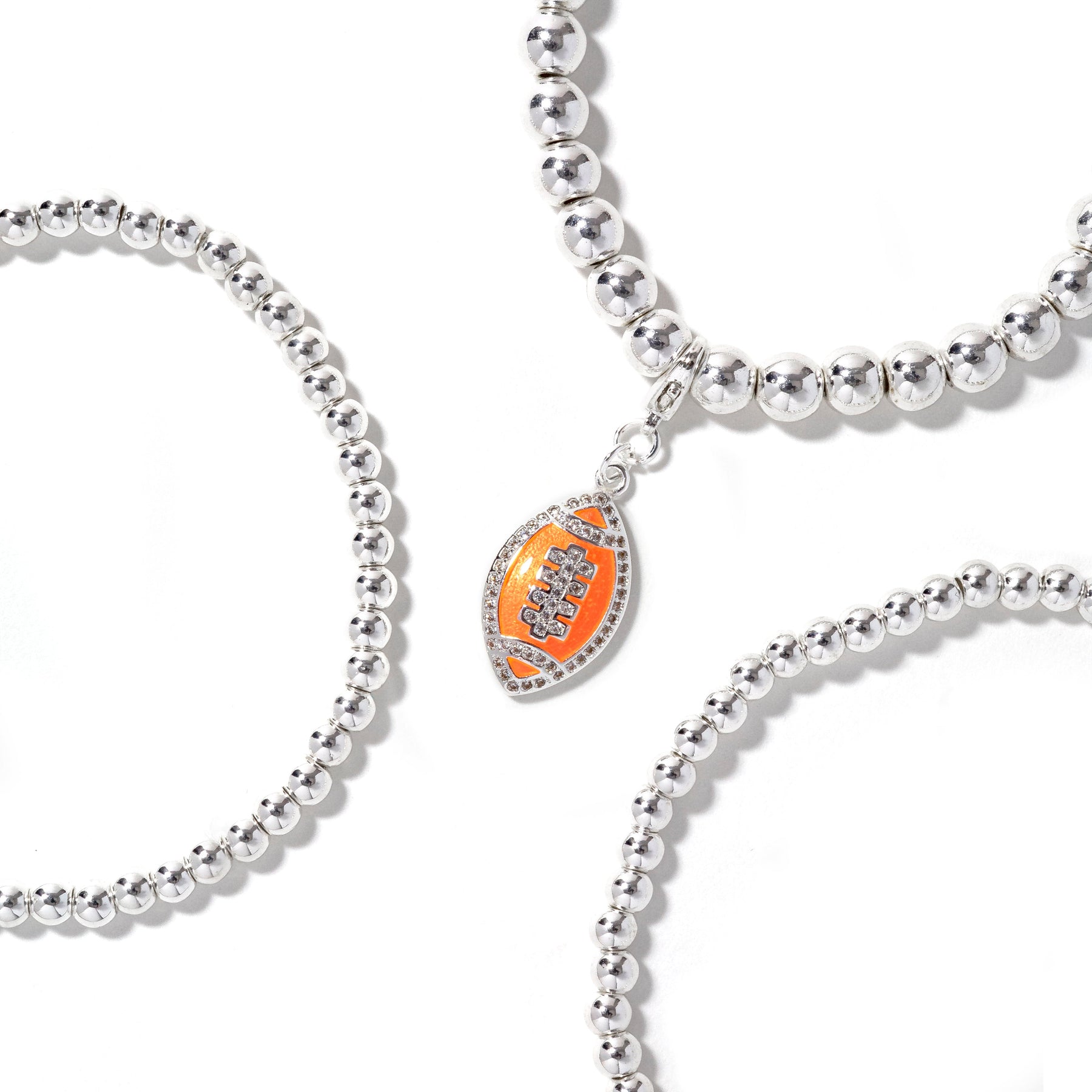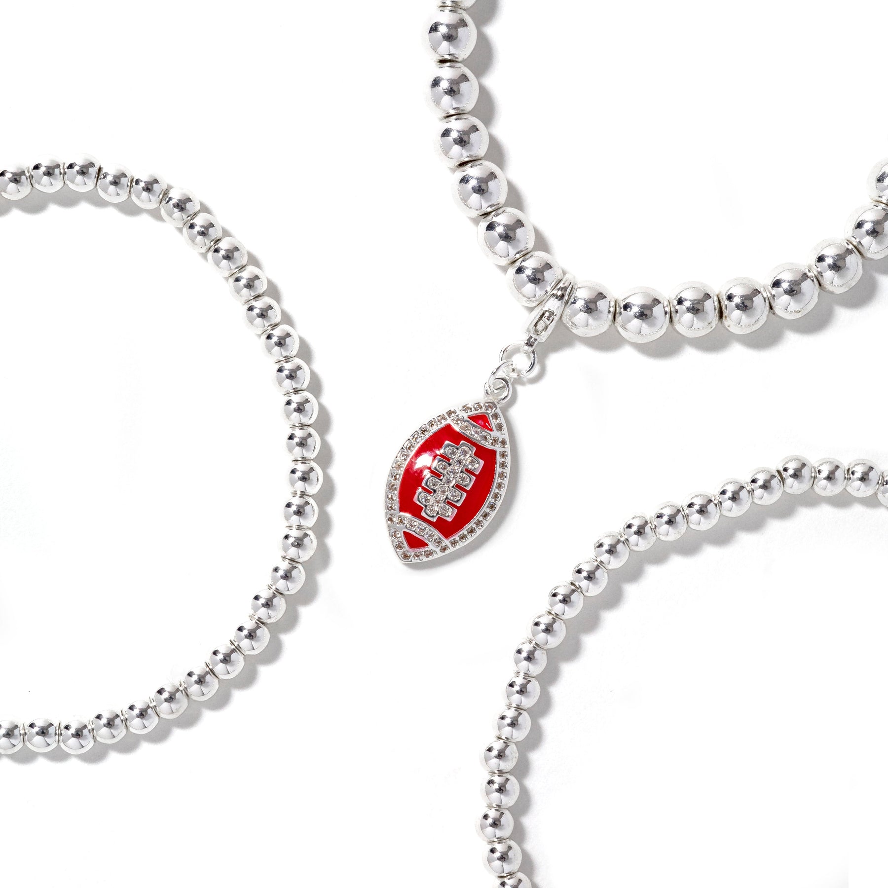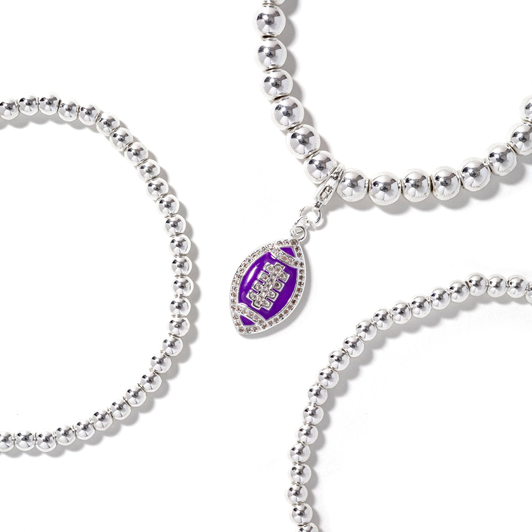 • 3piece stretch bracelet stack with removable football charm.