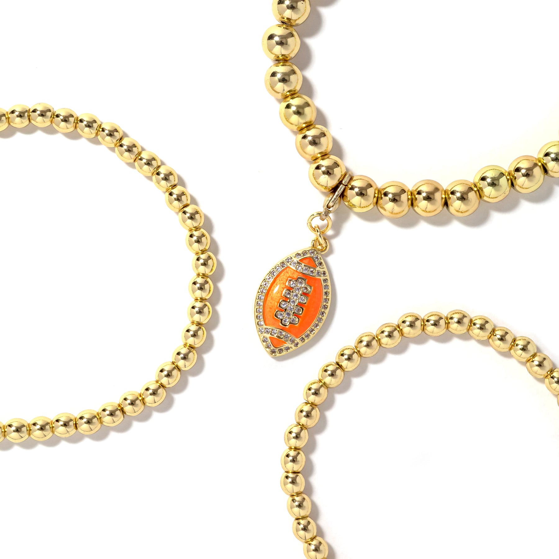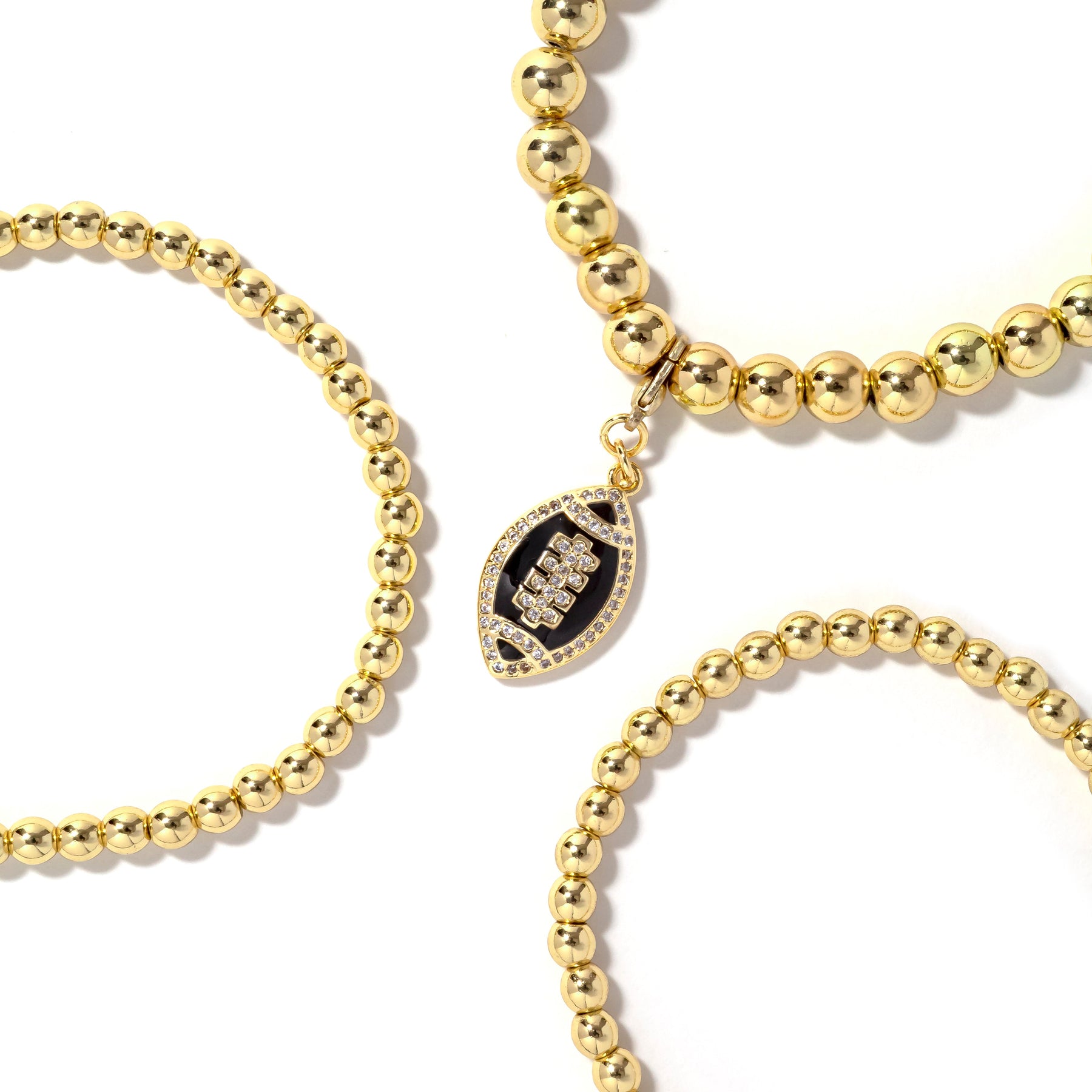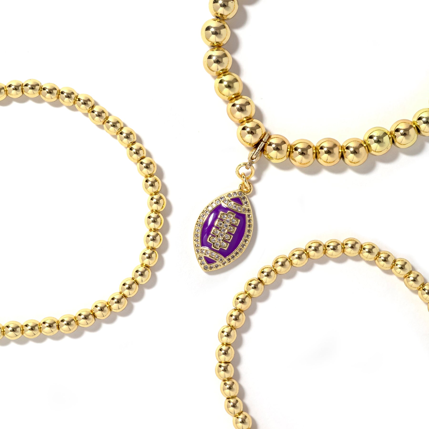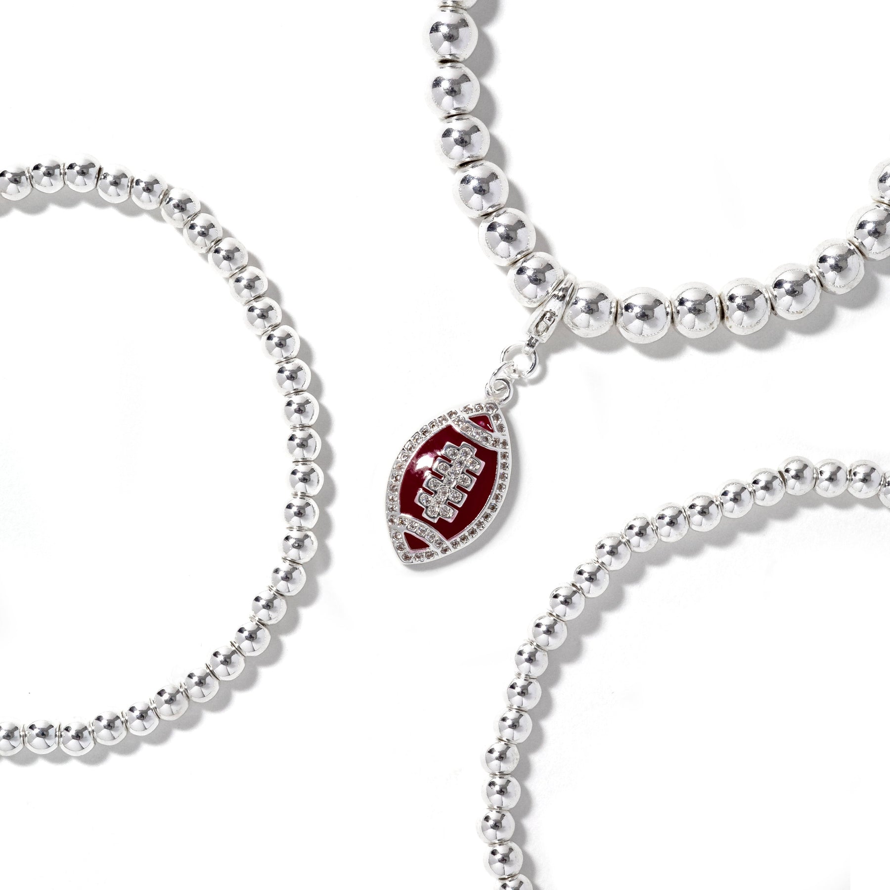 • 3piece stretch bracelet stack with removable football charm.