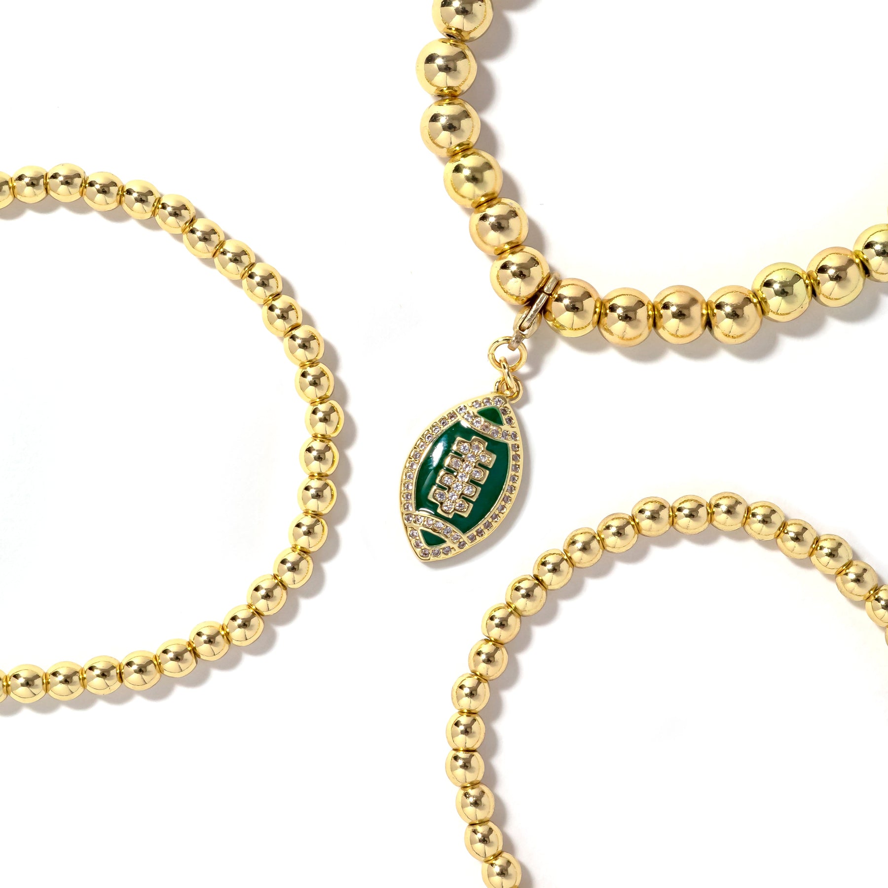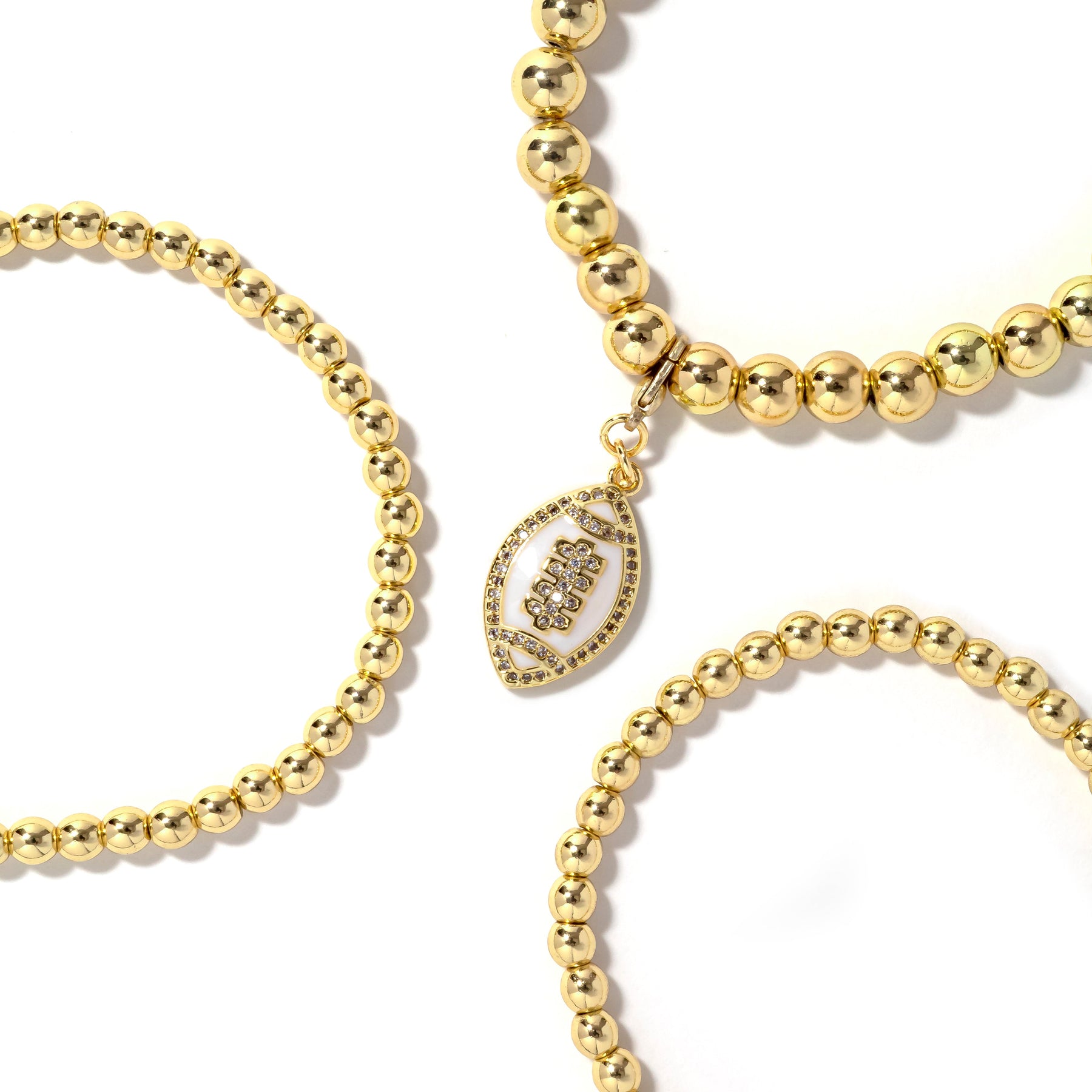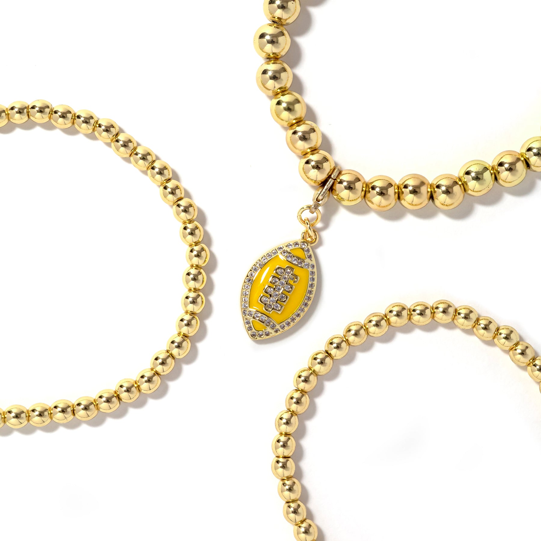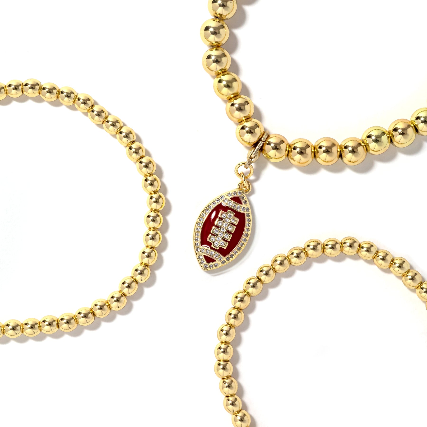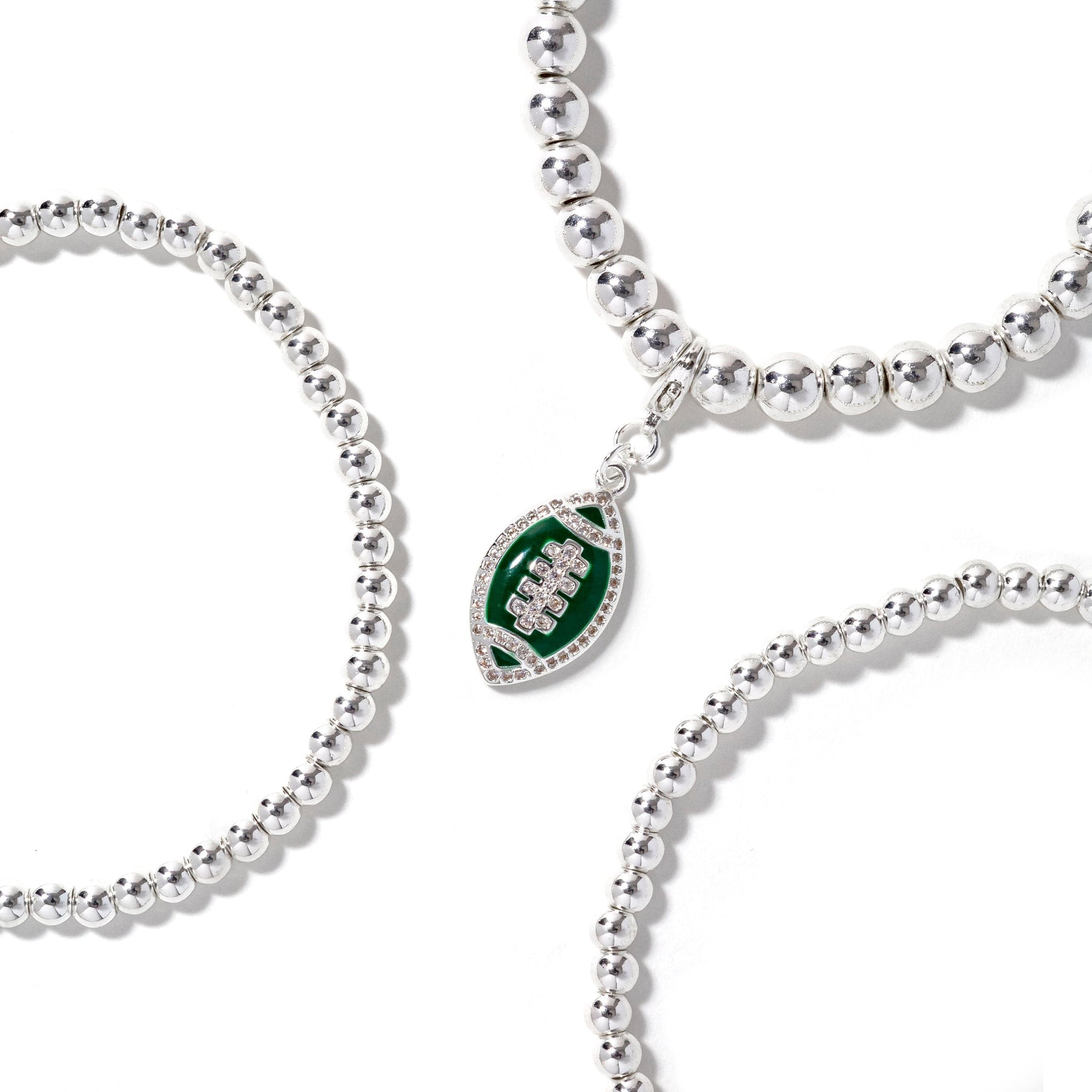 • 3piece stretch bracelet stack with removable football charm.