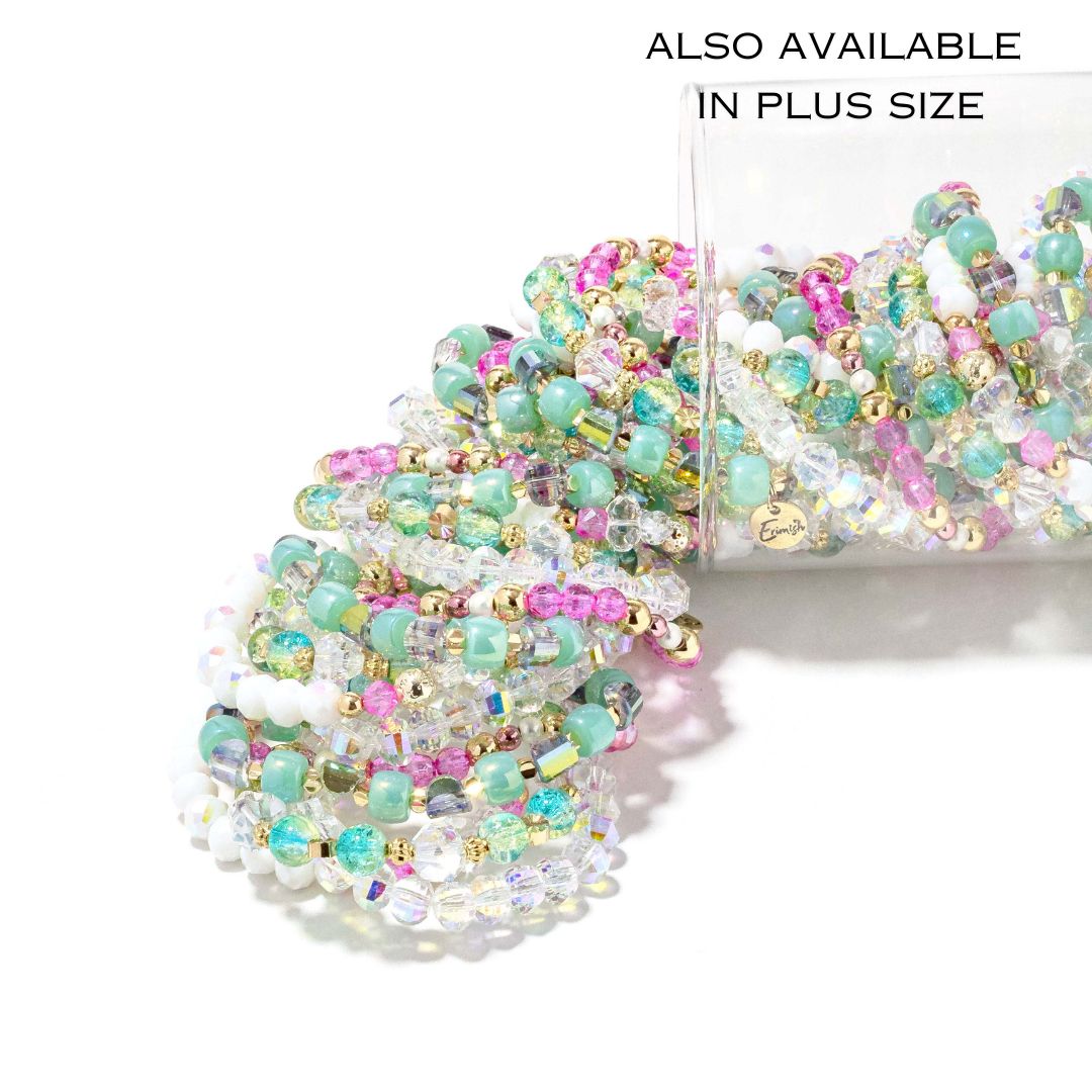 • Layer on the color with the Laguna Jar—a vibrant bracelet collection that pairs soft pink and refreshing mint tones for an effortlessly chic look.