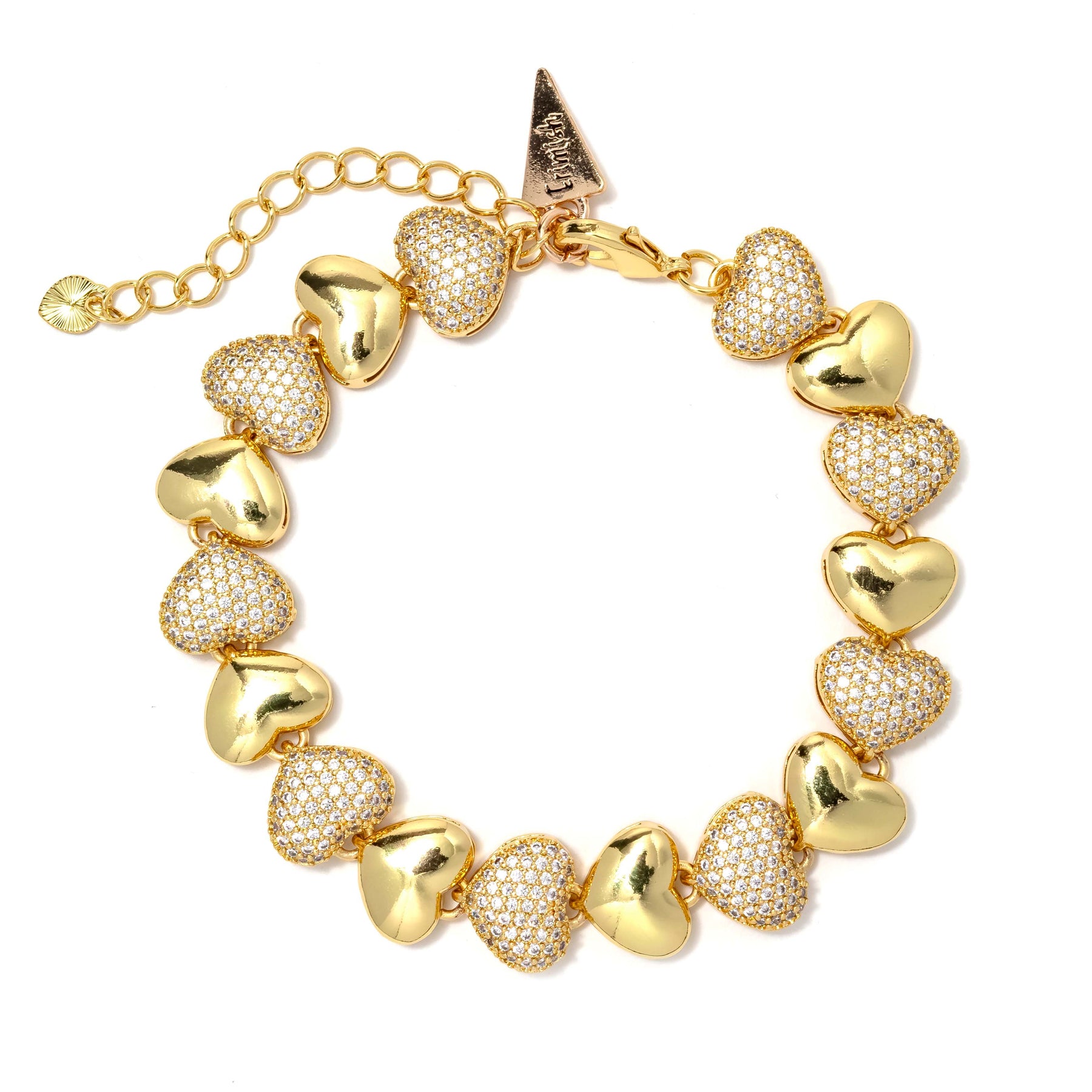 • Spread the love with our adorable Bubble Heart Bracelet, available in gleaming silver or radiant gold. This whimsical piece features charming dimensional hearts that catch the light beautifully, making it impossible to resist. Perfect for stacking with your favorite bracelets or wearing solo as a sweet reminder to keep your heart light and playful. Whether you're gifting it to someone special or treating yourself, this bracelet brings instant joy to your jewelry collection. Choose your metal and let your heart shine.