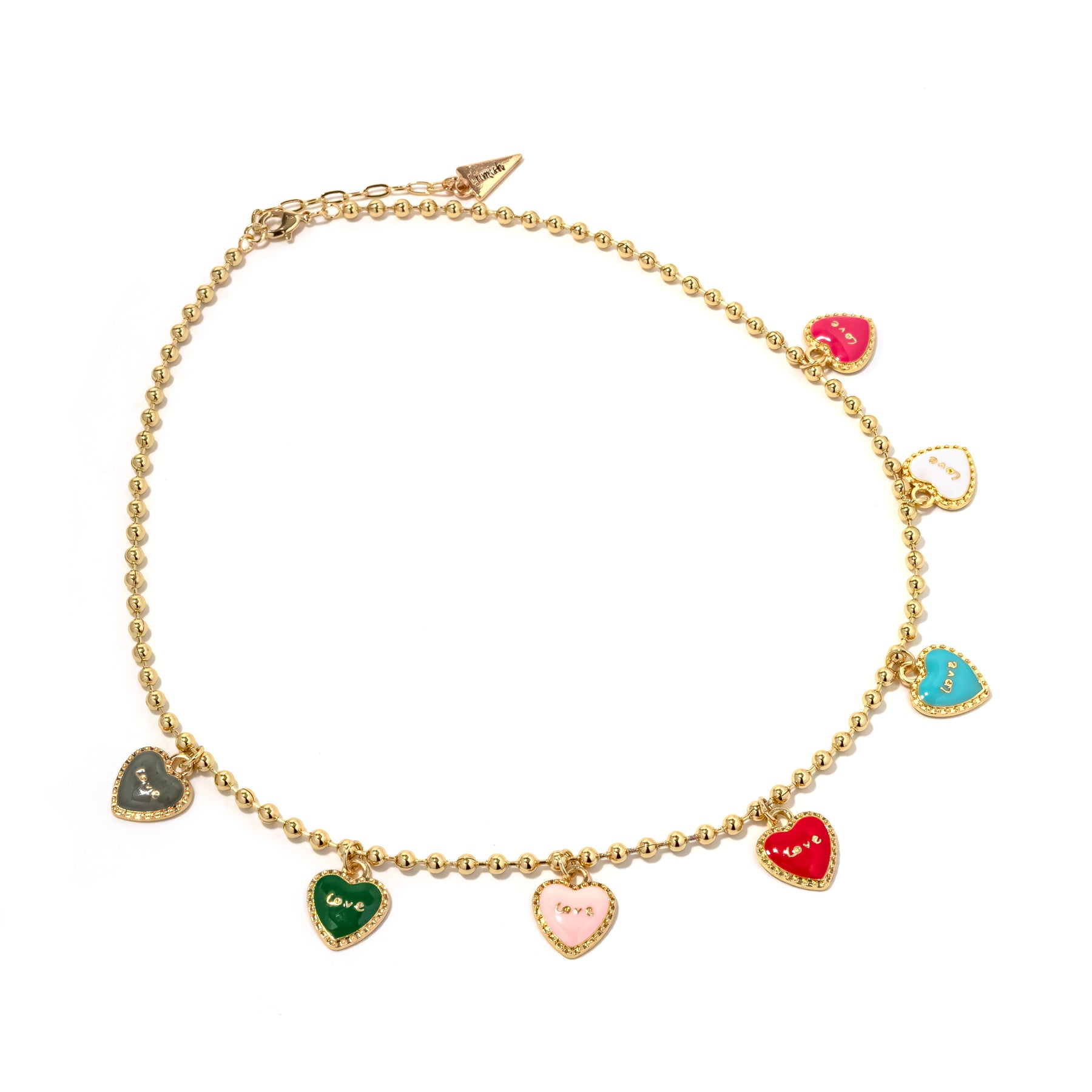 • Add a touch of charm to any outfit with our playful Love Charm Necklace. Featuring colorful enamel heart charms, this fun and vibrant necklace is sure to brighten up your day.