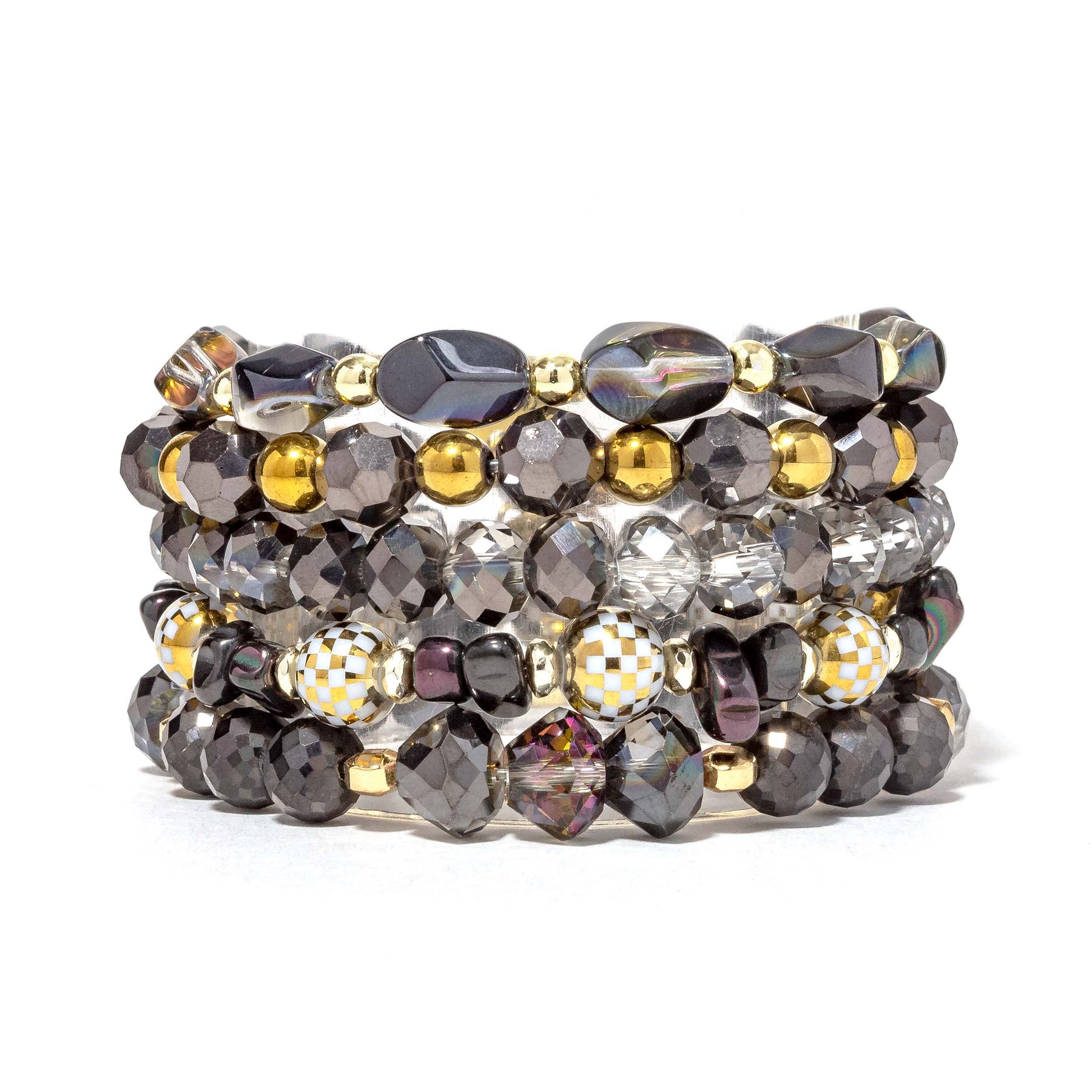 • Shine bright with the Stella Jar, where sleek black meets glimmering gold accents for the ultimate mix of edge and elegance! These show-stopping bracelets are perfect for layering—stack them all for maximum sparkle or pair a few for understated glamour.