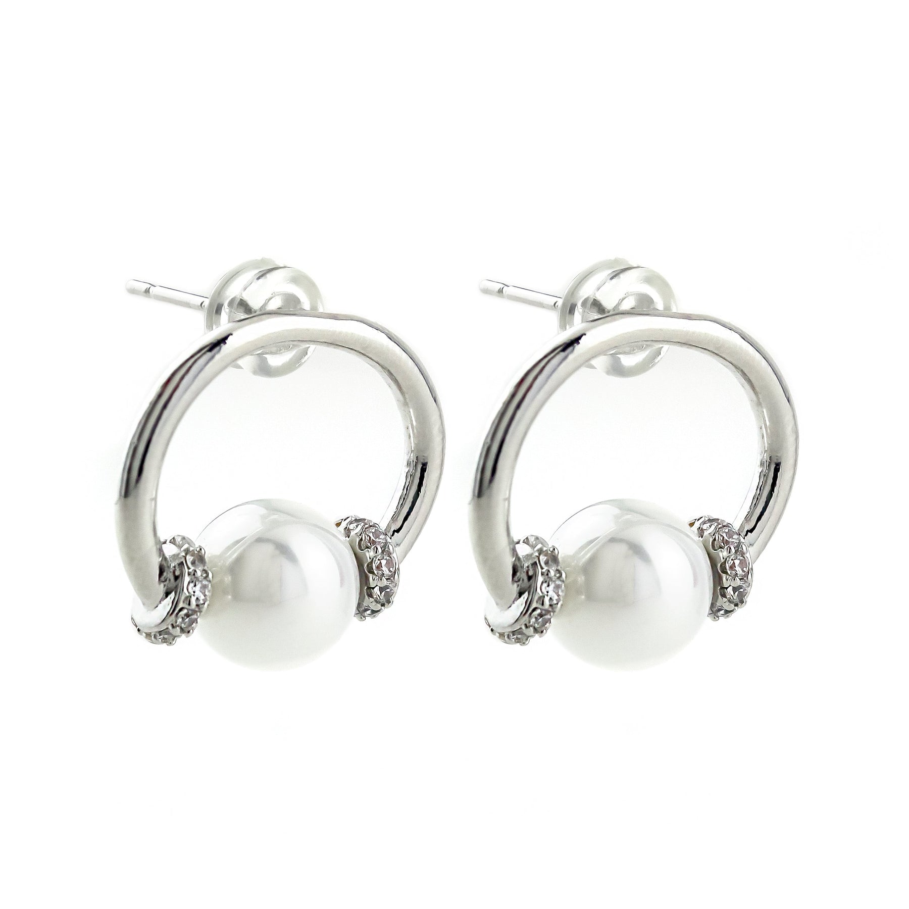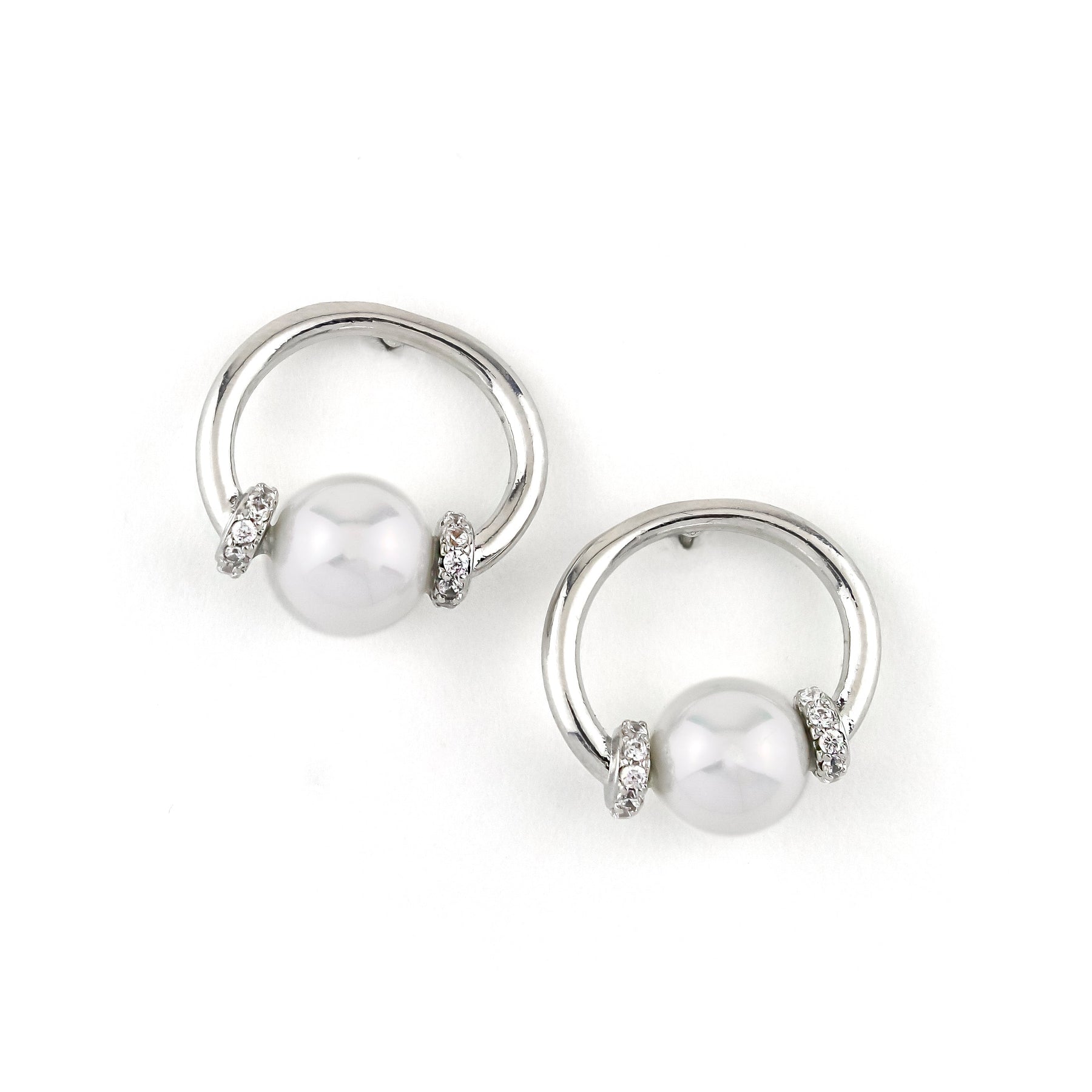 • Introducing our exquisite Ringer Earrings Silver, a must-have for any luxury jewelry collection. These small stud earrings are adorned with a hoop design, delicately accented with small pave stones and a stunning pearl.