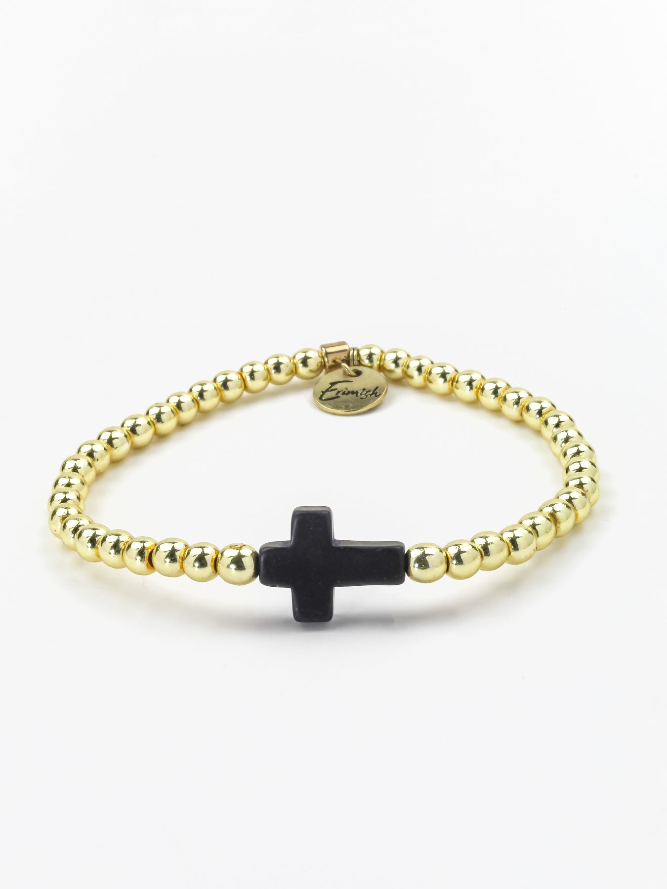• The Cross single is made up of gold round beads with a beautiful black cross connector!