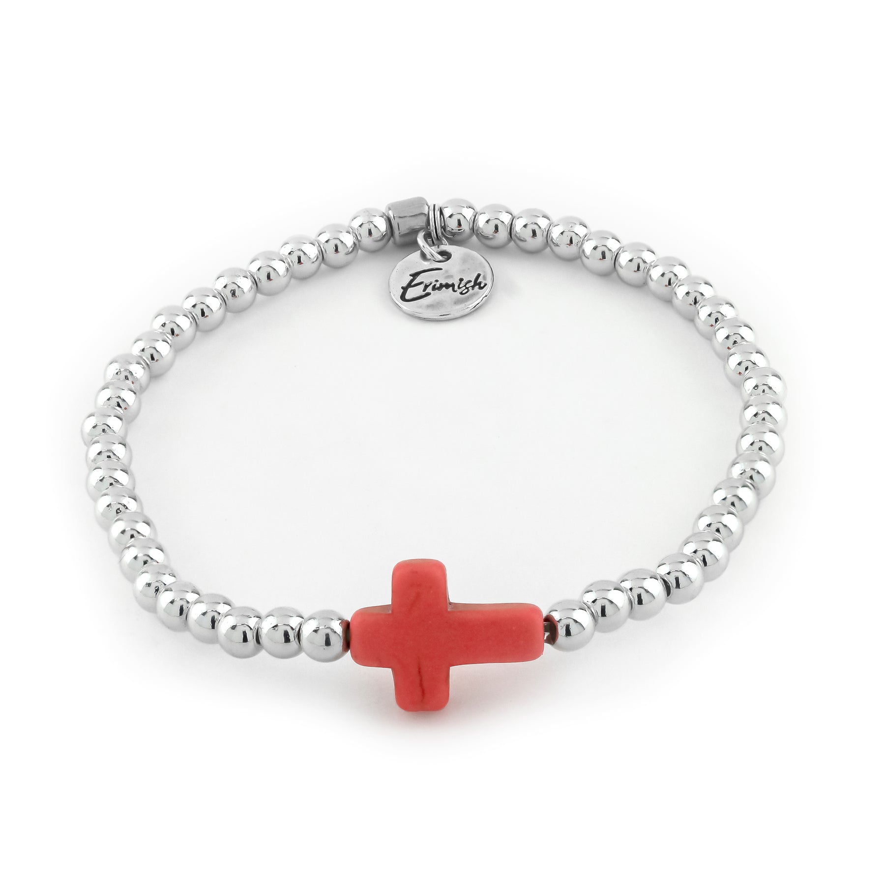 • The Cross single is made up of gold round beads with a beautiful pink cross connector!