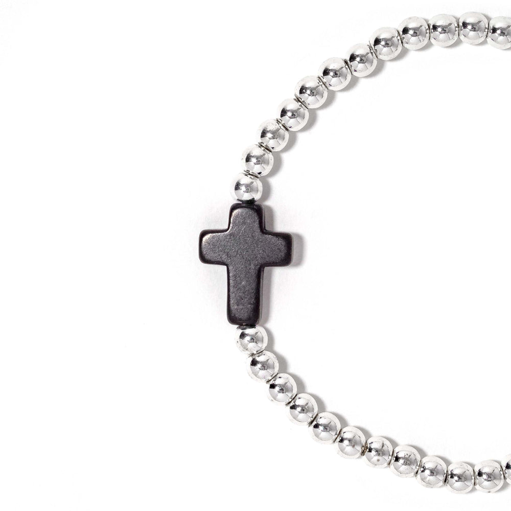 • The Cross single is made up of gold round beads with a beautiful black cross connector!